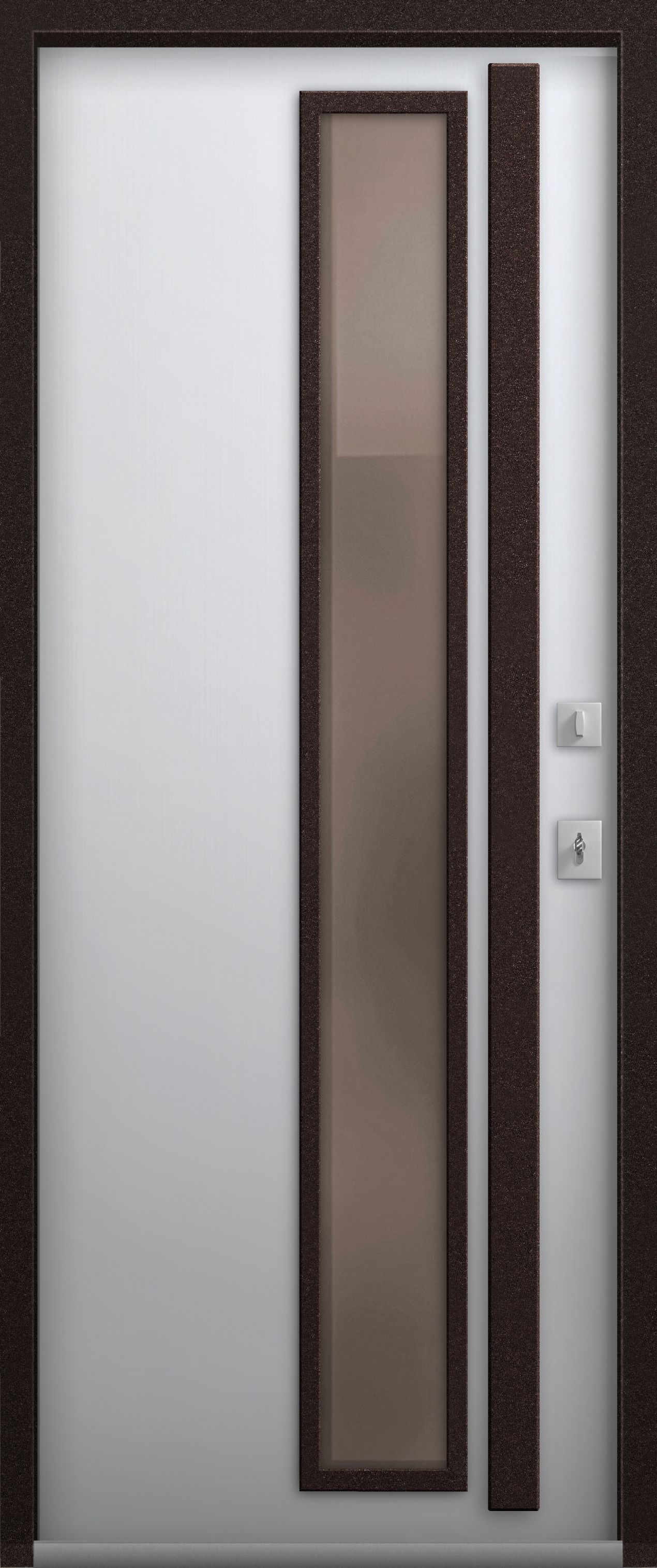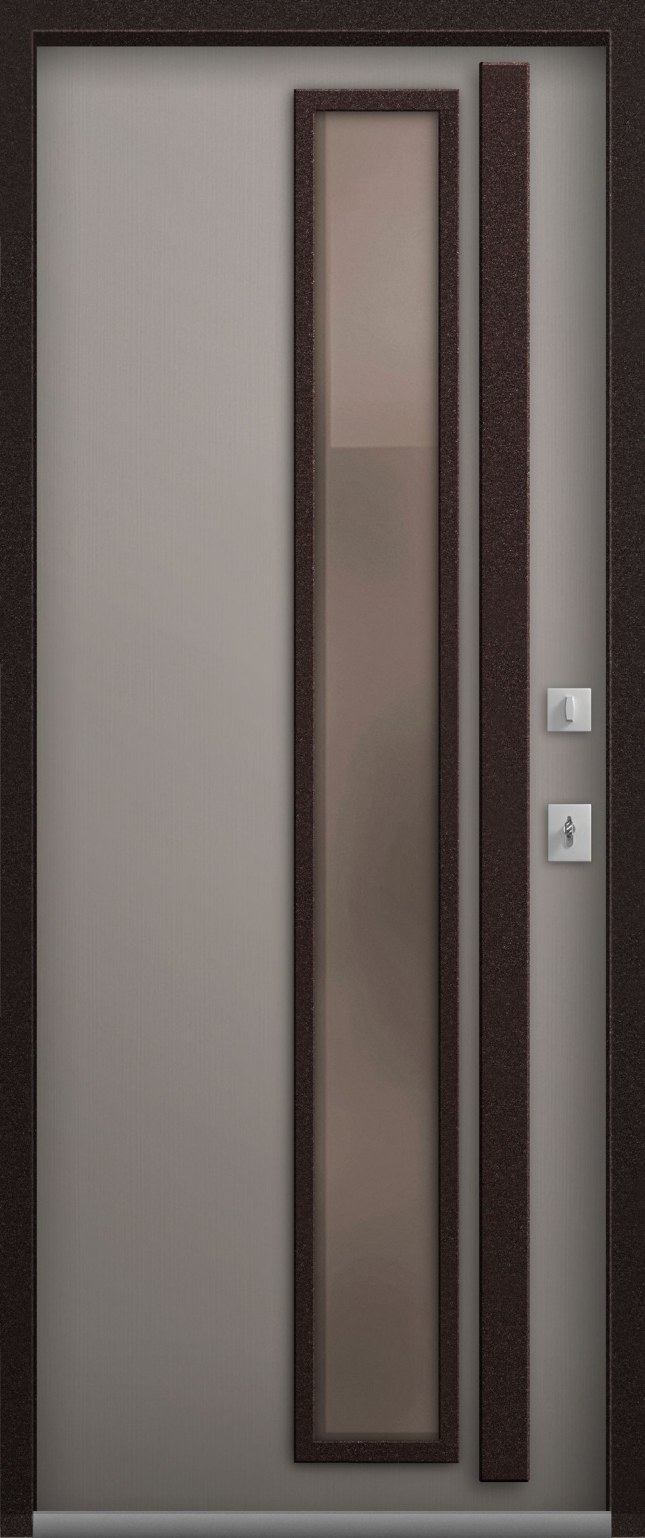 Внутренняя панель МДФ выполнена в двух цветах - кашемир белый и кашемир грей. Стекло цвета бронза с низкоэмиссионным энергосберегающим покрытием, сохраняет тепло внутри дома и практически исключает теплопотери. Дверь Т-14 отлично впишется в любой интерьер и защит ваш дом от холода.