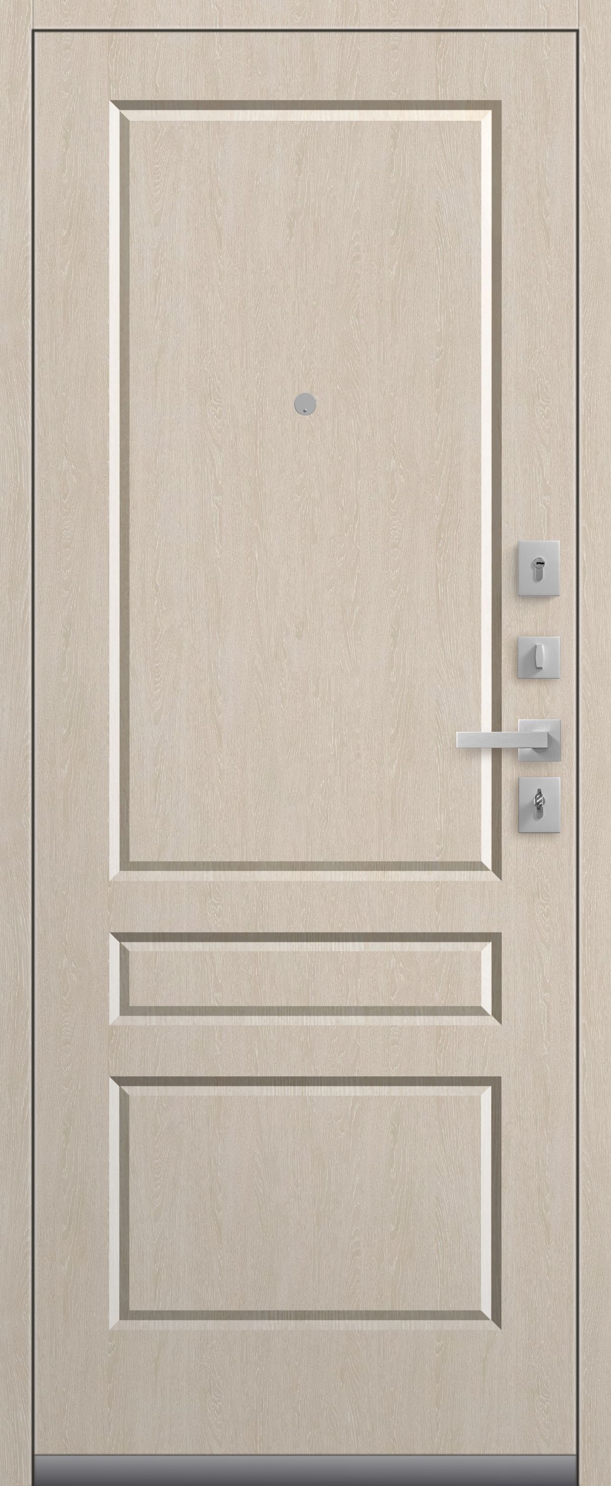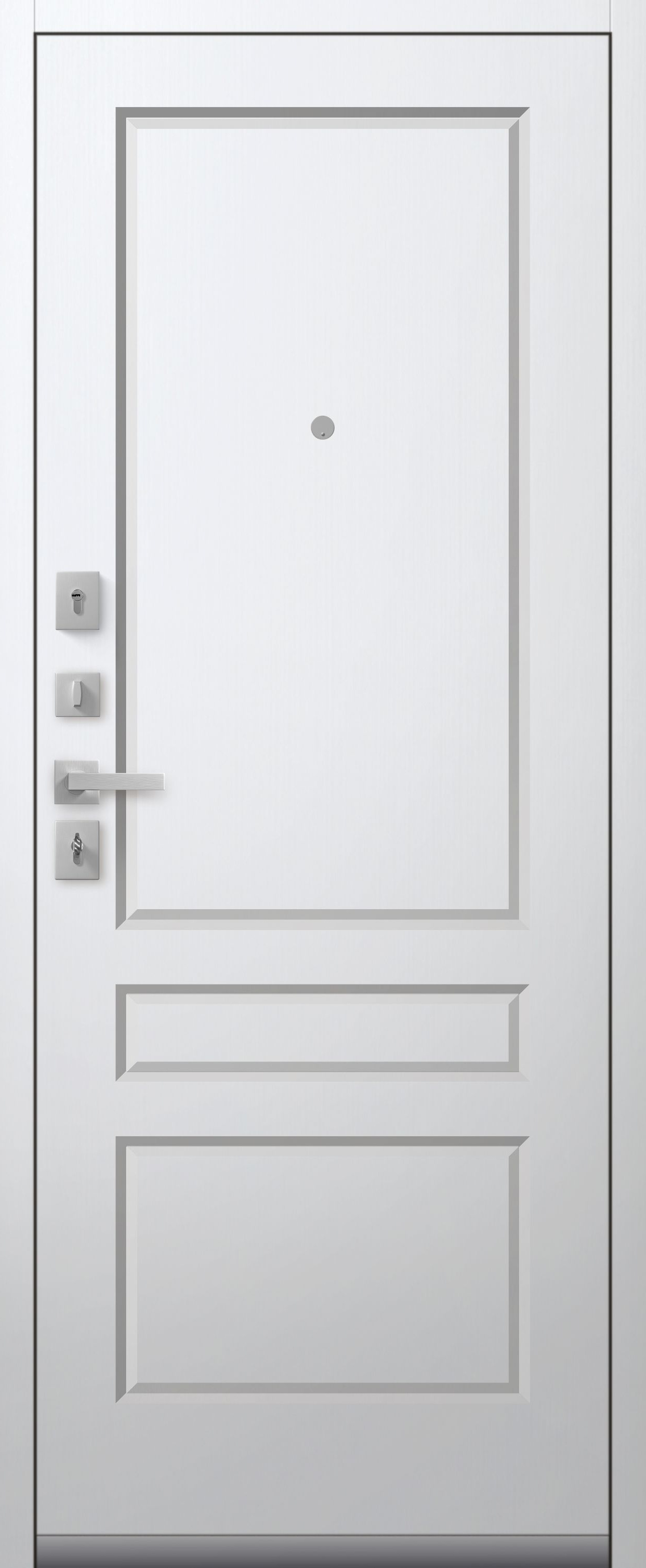 Внешняя металлическая поверхность обеспечивает надежную защиту от взлома и внешних воздействий. Внутренняя отделка выполнена из щита МДФ толщиной 16 мм, что придает двери эстетичный вид и улучшает звукоизоляцию. Цветовая гамма внутренней панели – седой дуб или белый – позволяет гармонично вписать дверь в любой интерьер.