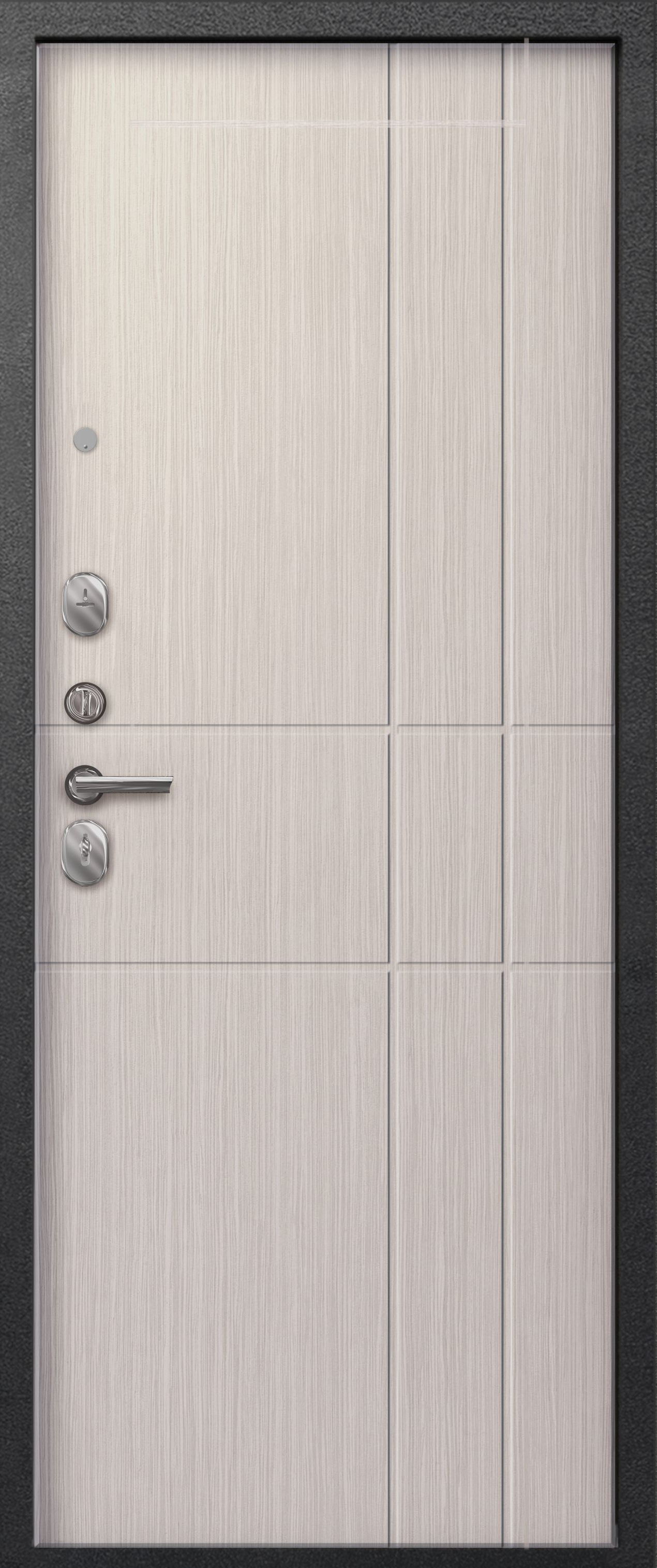 Два контура уплотнения с трехкамерным уплотнителем надежно защищают от сквозняков и посторонних запахов. Замки Sezam 103 и 102 в сочетании с эксцентриком (регулятором притвора), цилиндрами (ключ-вертушка и ключ-ключ) и броненакладкой на цилиндр обеспечивают высокий уровень защиты от несанкционированного проникновения. Дополнительная ночная задвижка повышает безопасность, а раздельная ручка и глазок добавляют удобства в использовании. Противосъемные штыри и две петли обеспечивают дополнительную защиту от взлома.