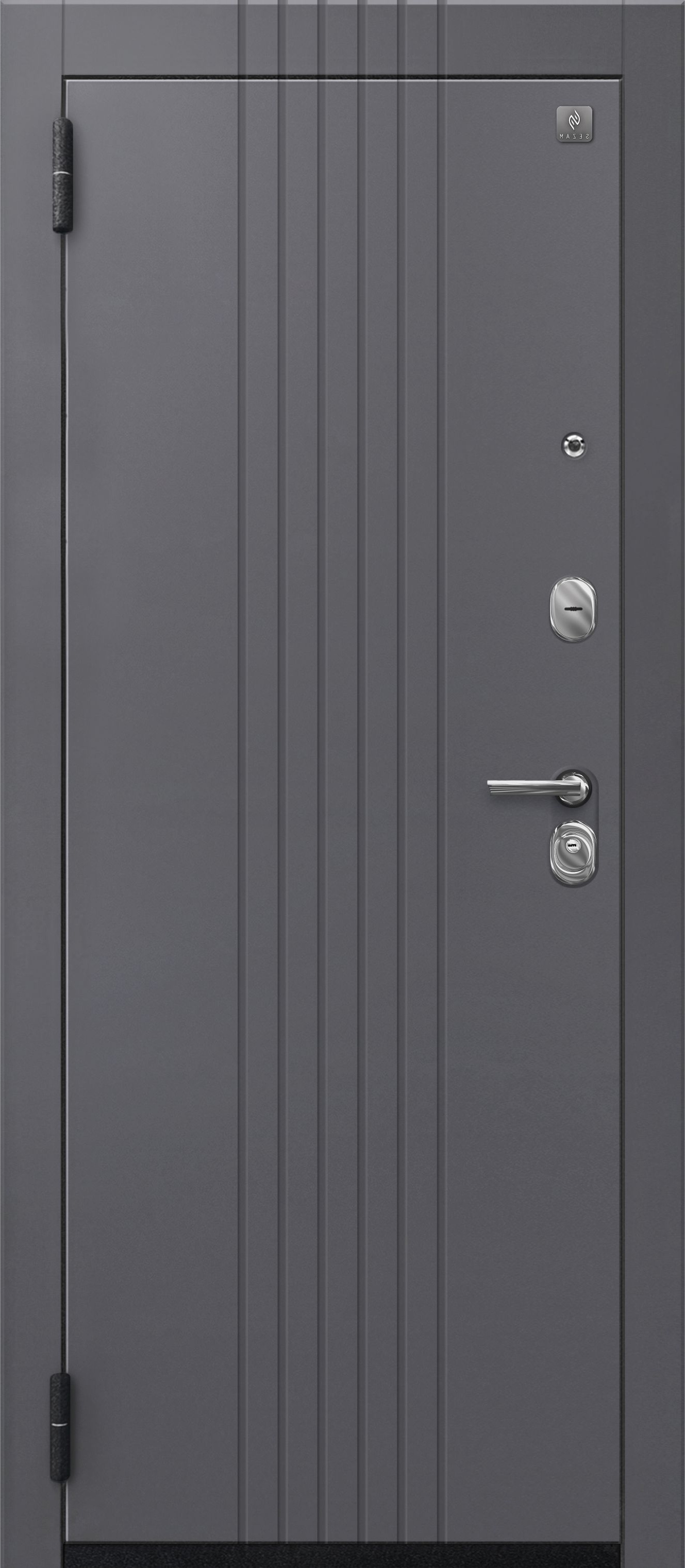 Два контура уплотнения с трехкамерным уплотнителем надежно защищают от сквозняков и посторонних запахов. Замки Sezam 103 и 102 в сочетании с эксцентриком (регулятором притвора), цилиндрами (ключ-вертушка и ключ-ключ) и броненакладкой на цилиндр обеспечивают высокий уровень защиты от несанкционированного проникновения. Дополнительная ночная задвижка повышает безопасность, а раздельная ручка и глазок добавляют удобства в использовании. Противосъемные штыри и две петли обеспечивают дополнительную защиту от взлома.