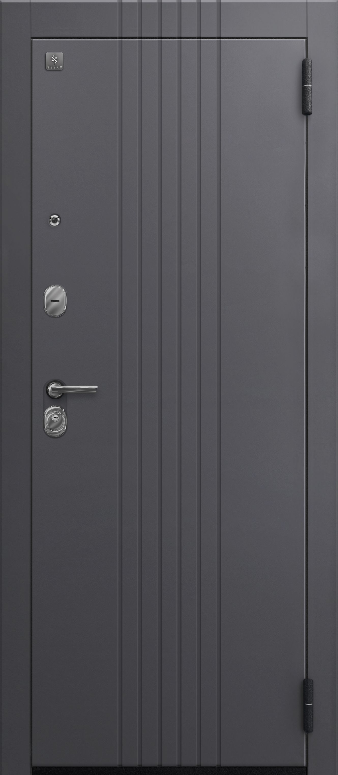 Два контура уплотнения с трехкамерным уплотнителем надежно защищают от сквозняков и посторонних запахов. Замки Sezam 103 и 102 в сочетании с эксцентриком (регулятором притвора), цилиндрами (ключ-вертушка и ключ-ключ) и броненакладкой на цилиндр обеспечивают высокий уровень защиты от несанкционированного проникновения. Дополнительная ночная задвижка повышает безопасность, а раздельная ручка и глазок добавляют удобства в использовании. Противосъемные штыри и две петли обеспечивают дополнительную защиту от взлома.