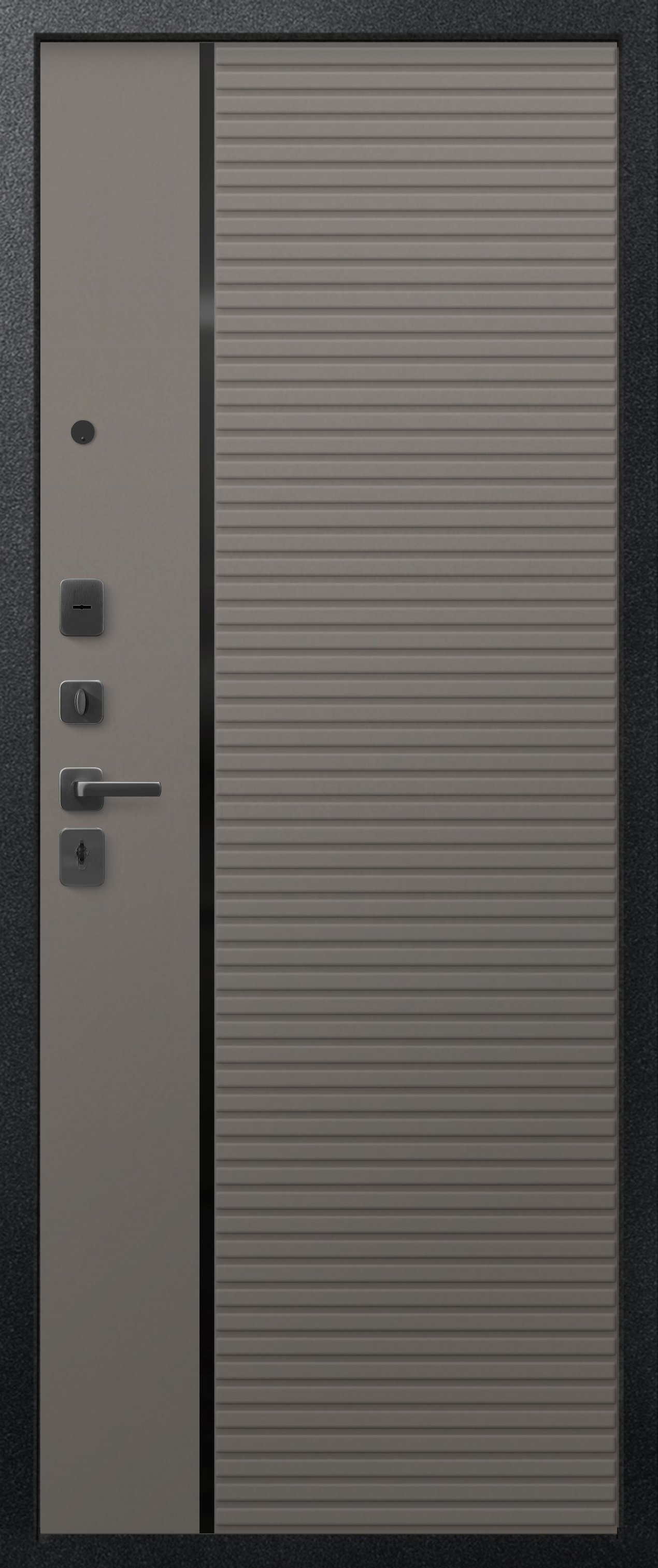 Эта модель имеет дизайнерскую внешнюю панель. Рисунок на МДФ – лаконичный, что позволяет двери вписаться в любой интерьер. При отличных технических характеристиках у нее стильный внешний вид.