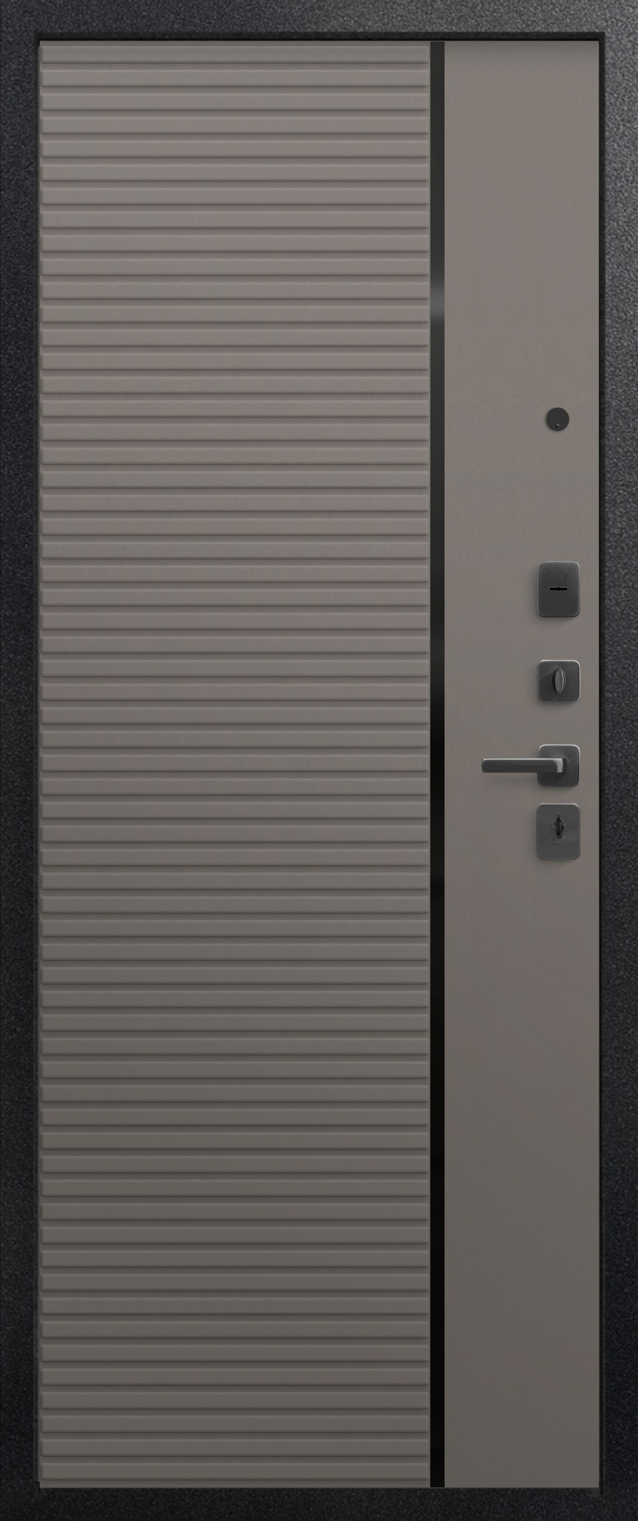 Эта модель имеет дизайнерскую внешнюю панель. Рисунок на МДФ – лаконичный, что позволяет двери вписаться в любой интерьер. При отличных технических характеристиках у нее стильный внешний вид.