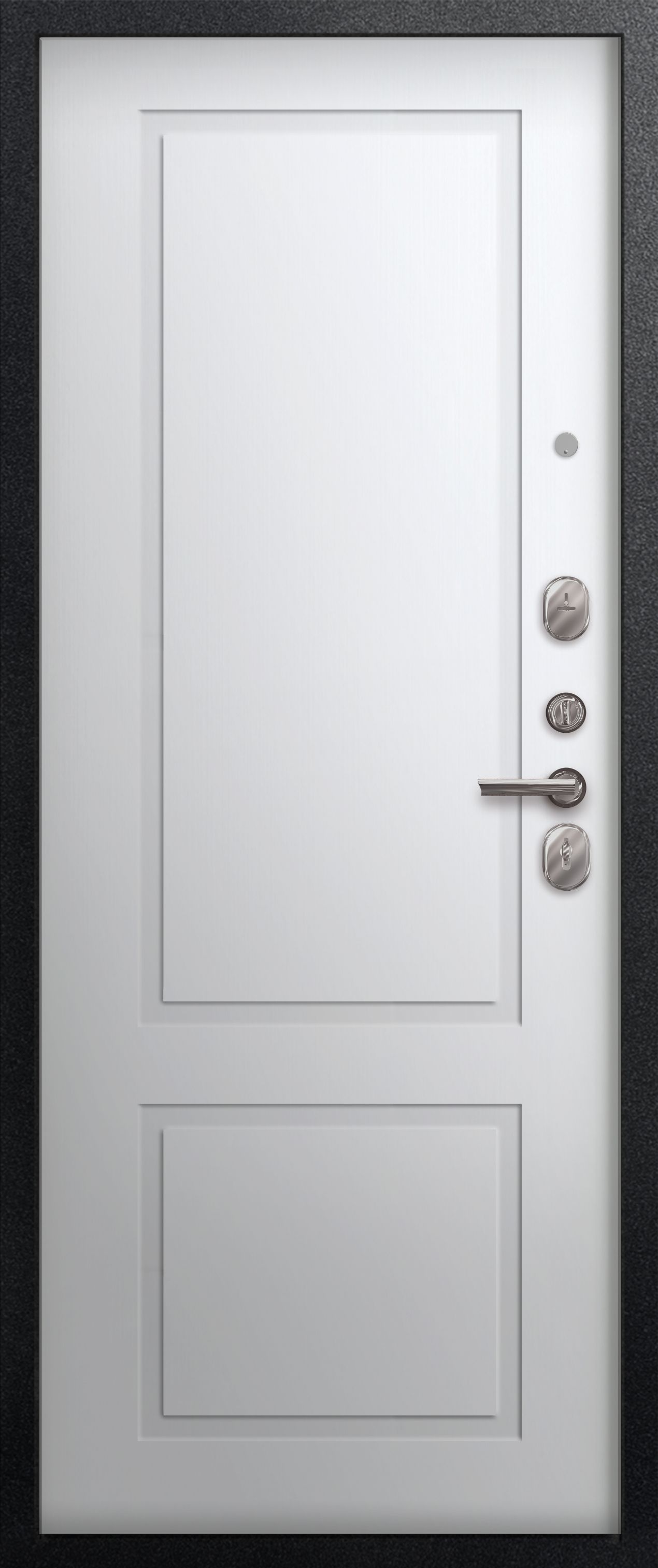 Три контура уплотнения защищают квартиру от постороннего шума и сквозняков. Сталь толщиной 1 мм обеспечивает достаточную прочность при умеренной массе готового изделия. Для обеспечения дополнительной жесткости конструкции используется технологический вертикальный гиб(штамп) с внешней стороны полотна. Наполнитель двери – пенополистирол.