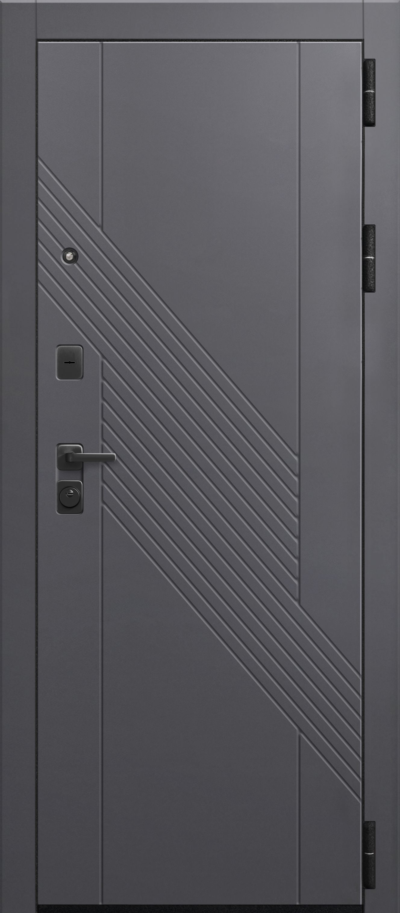 Эта модель имеет дизайнерскую внешнюю панель. Рисунок на МДФ – лаконичный, что позволяет двери вписаться в любой интерьер. При отличных технических характеристиках у нее стильный внешний вид.