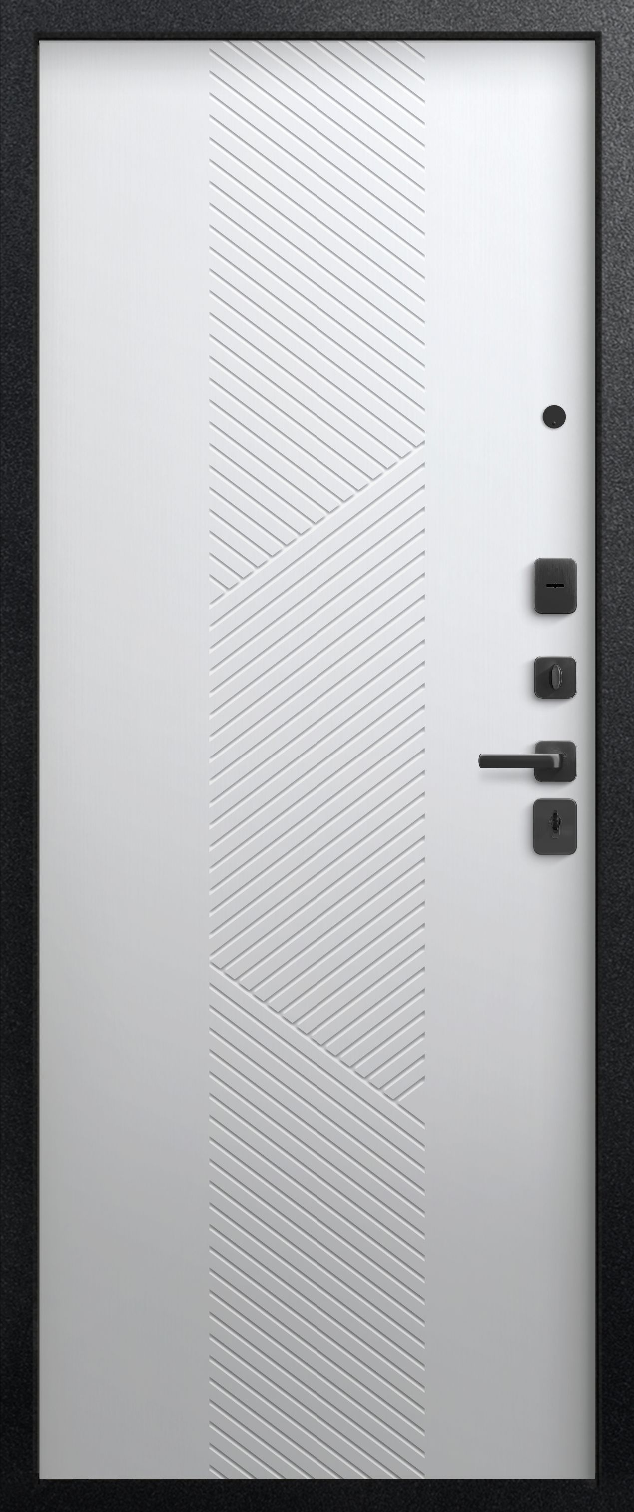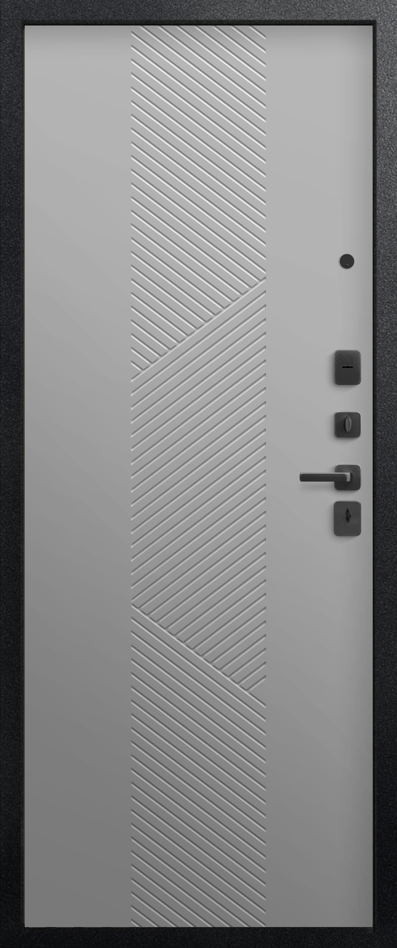 Эта модель имеет дизайнерскую внешнюю панель. Рисунок на МДФ – лаконичный, что позволяет двери вписаться в любой интерьер. При отличных технических характеристиках у нее стильный внешний вид.